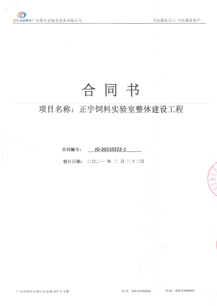 首先在这里感谢佛山市顺德区正宇饲料有限公司对我们嘉东的信任,我们一定会力尽所能,务必将项目做到最好,按时保质完成;我司将一如既往提供专业、安全、快捷、全程跟踪的实验室技术支持与服务,打造出一流的产品质量。