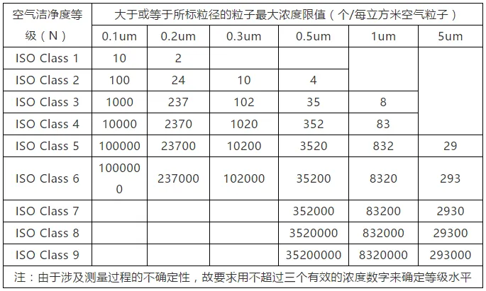 空气洁净度分级标准:IOS14644-1(国际标准)