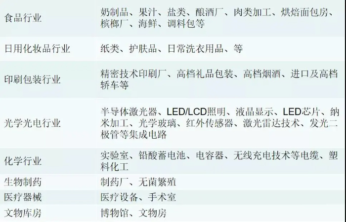 目前净化工程行业涉及如下:微电子、日用化妆品、印刷包装、光学光电、化学、生物制药、医疗器械、洁净手术室、航空航天、涂装涂料、文物库房,电子行业等。