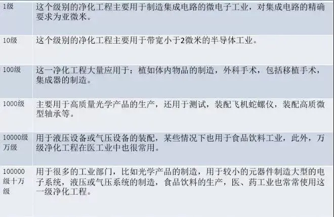 三、洁净室施工等级划分