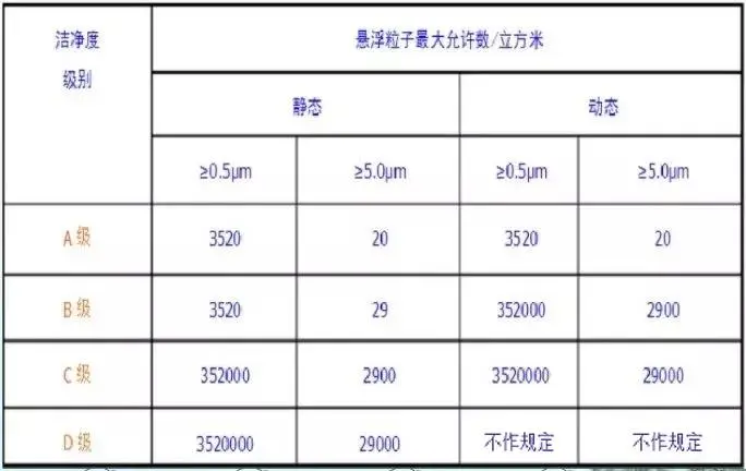 洁净区各级别空气悬浮粒子的标准规定如下表:
