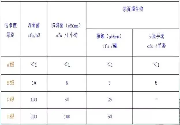 GMP洁净度等级标准