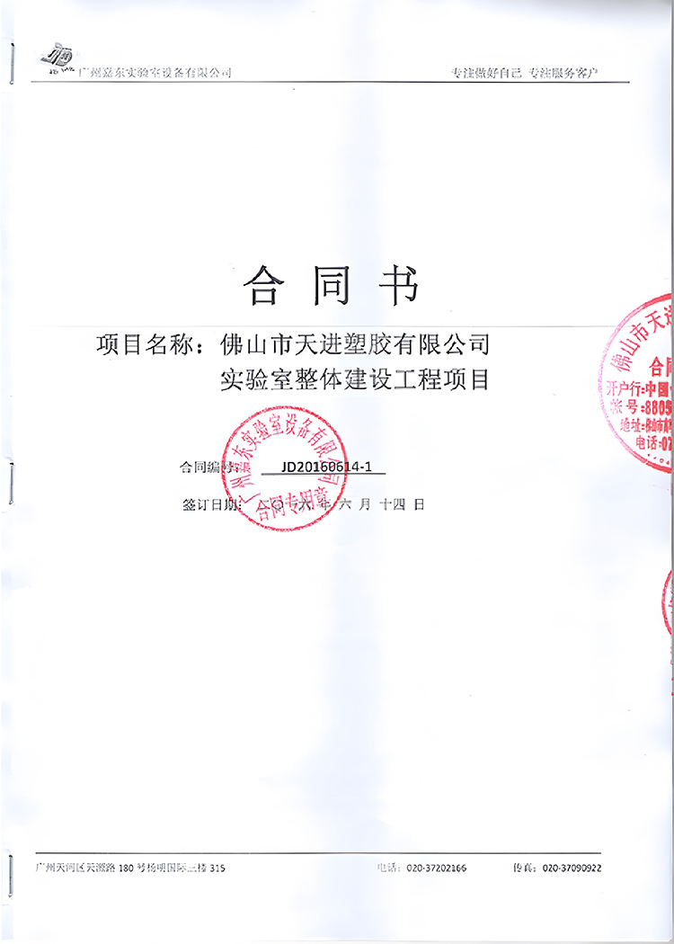 在这个炎热的夏日,我们嘉东实验室又有佳绩,正式与佛山天进塑胶有限公司达成合作关系,签下了其公司《实验室整体建设工程项目》的合同。
